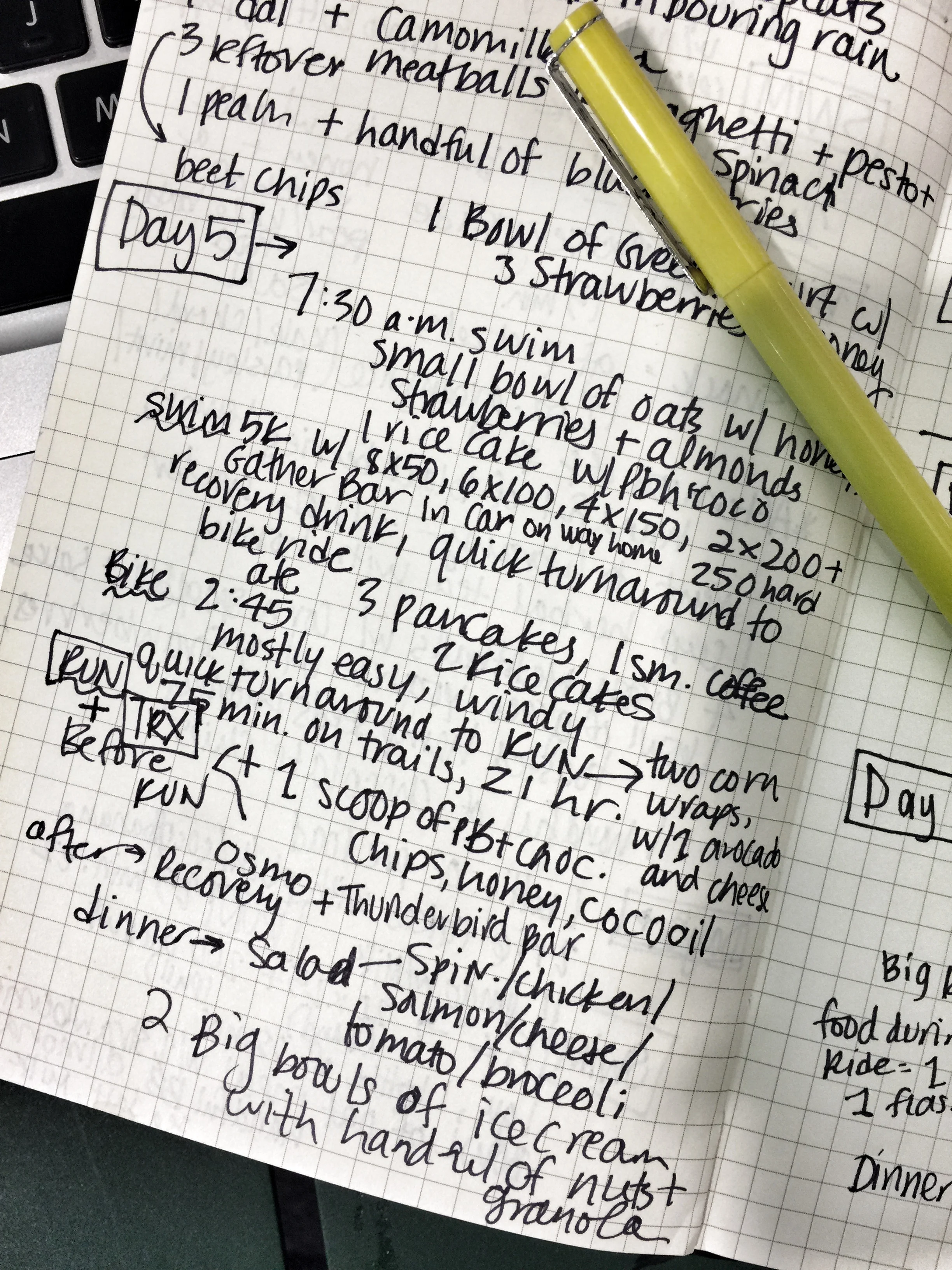 Before we left, Melissa asked us to keep a log of what we ate to fuel our training days. Here's a look at one of our biggest training (and eating) days. --Bec