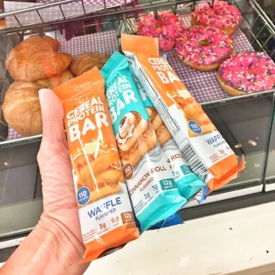 My husband is a big fan of the Quest Nutrition Protein Bars, so I was familiar with the brand and was excited to discover their latest product, the Quest Cereal Bar. They are lower in sugar than most bars because they use allulose as a sweetener which is a natural sugar found in things like raisins and figs. Also, they are soy free, AND gluten free (the cereal is made from protein, not grains). The cereal bars come in three flavors: chocolate, waffle, and cinnamon roll flavors. To me they taste like a splurge but weigh in at only 110 calories and 4.5g of fat. Plus, they contain 12g of protein.